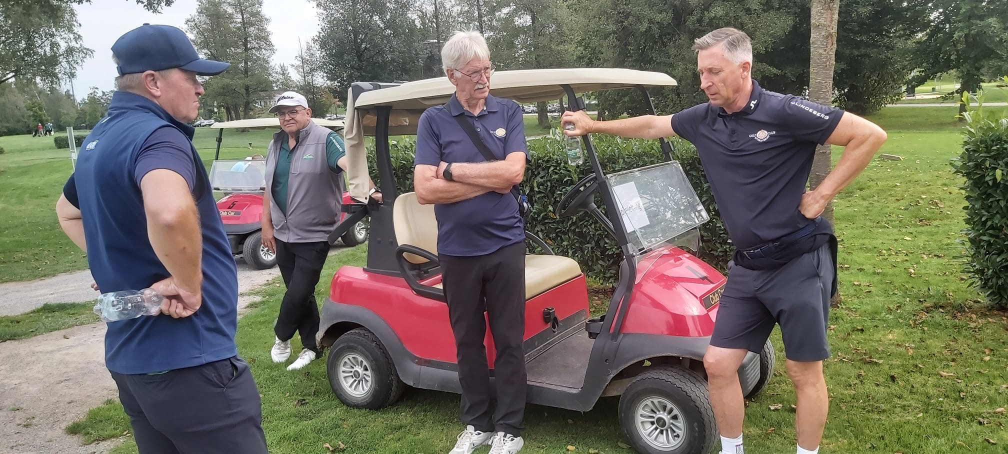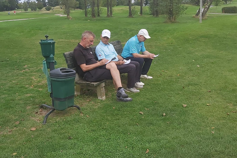 Nach den Proberunden wussten wir um den alten Baumbestand, durch Bunker geschützte und schwer lesbare Grüns, die es für uns besonders in sich hatten. Jede Menge 3 puts belasteten am Ende unser Ergebnis. Anfangs lief alles noch nach Plan: Torsten (87), unterstützt durch Caddy Maik, sowie Reimund mit einer 83 . Doch die weiteren Ergebnisse, Frank, ansonsten eine Bank (99), Wolfgang E. (100) , ließen schon ahnen, dass es kein guter Tag sein würde.
